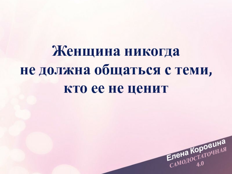 Елена Коровина САМОДОСТАТОЧНАЯ 4.0Женщина никогда  не должна общаться с теми,  кто ее не ценит