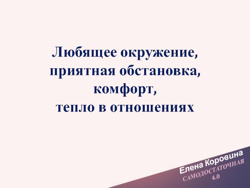 Елена Коровина САМОДОСТАТОЧНАЯ 4.0Любящее окружение,  приятная обстановка,  комфорт,  тепло в отношениях