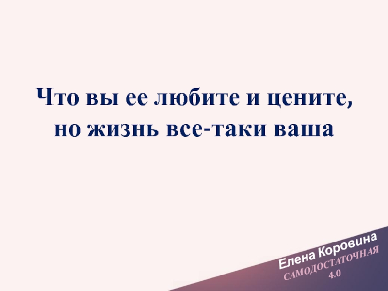 Слайд 2Елена Коровина САМОДОСТАТОЧНАЯ 4.0