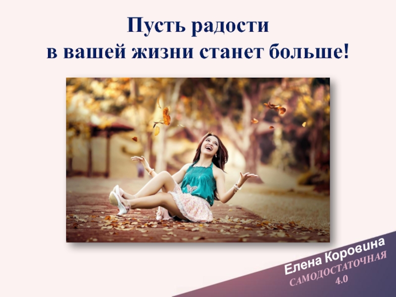 Елена Коровина САМОДОСТАТОЧНАЯ 4.0Пусть радости  в вашей жизни станет больше!