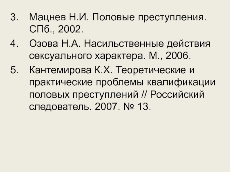 Слайд 4Мацнев Н.И. Половые преступления. СПб., 2002.