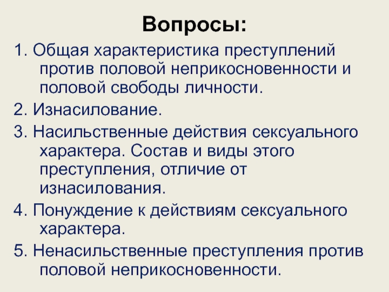 1. Общая характеристика преступлений против половой неприкосновенности и половой свободы