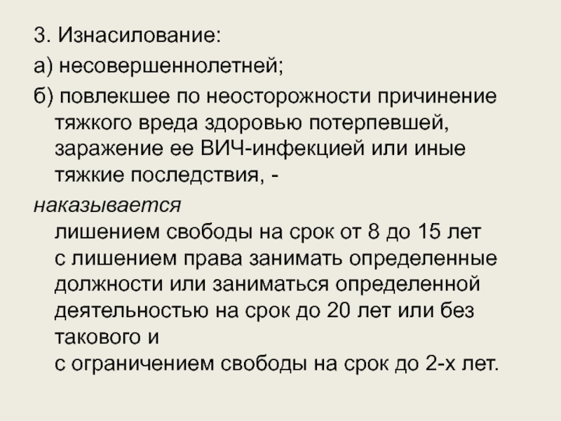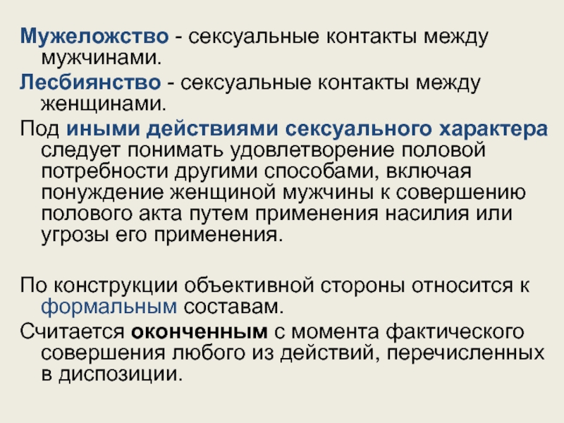 Слайд 32Статья 134. Половое сношение и иные действия сексуального характера с