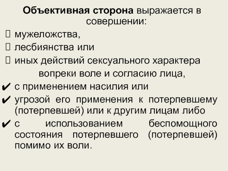 Слайд 34Объектом этого преступления является половая неприкосновенность лица,