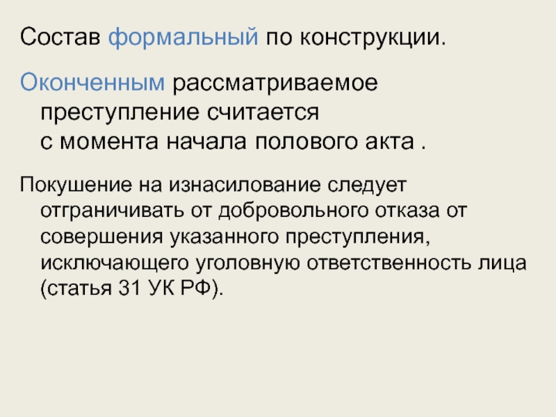 Слайд 38Признаки состава преступления аналогичны ст. 134 УК.