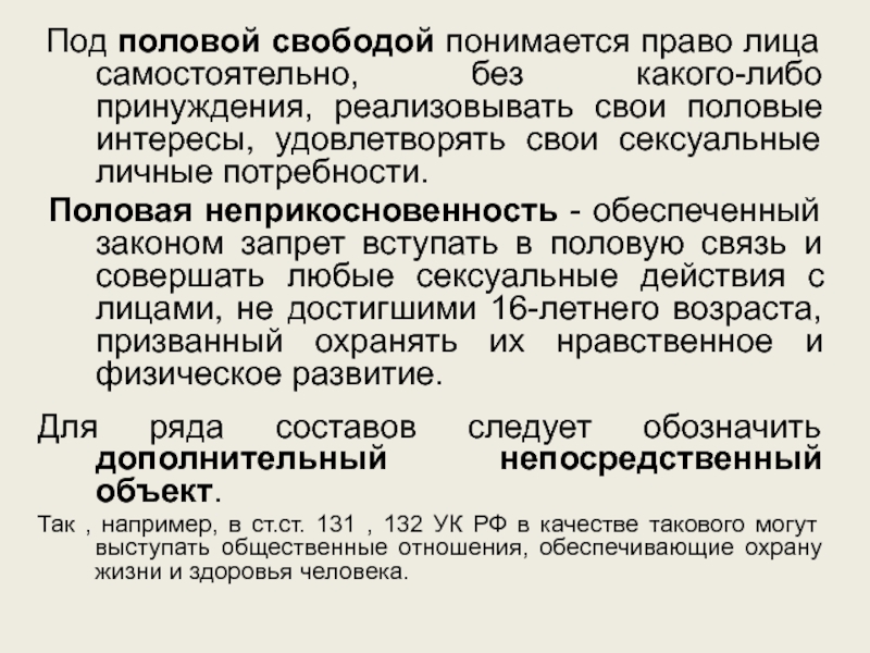 неприкосновенности и половой свободы личности. Ст. 131 – 135.