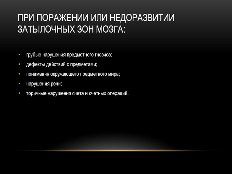Слайд 5При поражении или недоразвитии затылочных зон мозга: