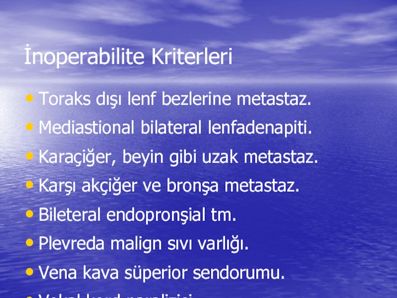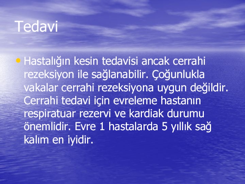 cerrahi rezeksiyona uygun değildir. Cerrahi tedavi için evreleme hastanın respiratuar