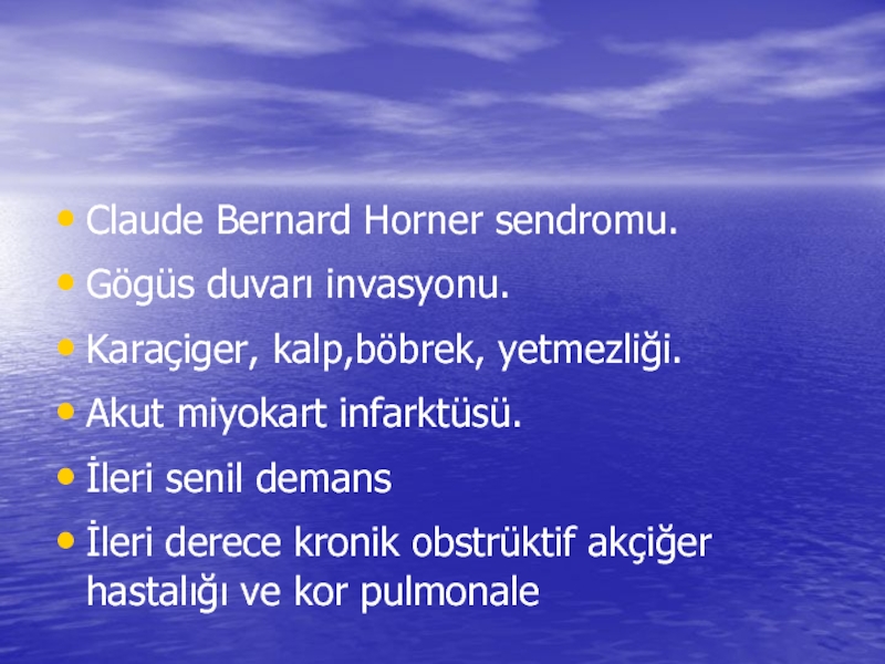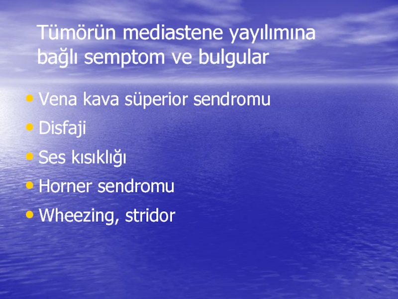 Слайд 15Tümörün mediastene yayılımına bağlı semptom ve bulgular