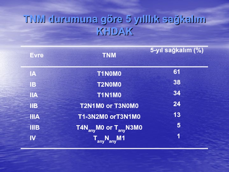 rezervi ve kardiak durumu önemlidir. Evre 1 hastalarda 5 yıllık sağ kalım en iyidir.