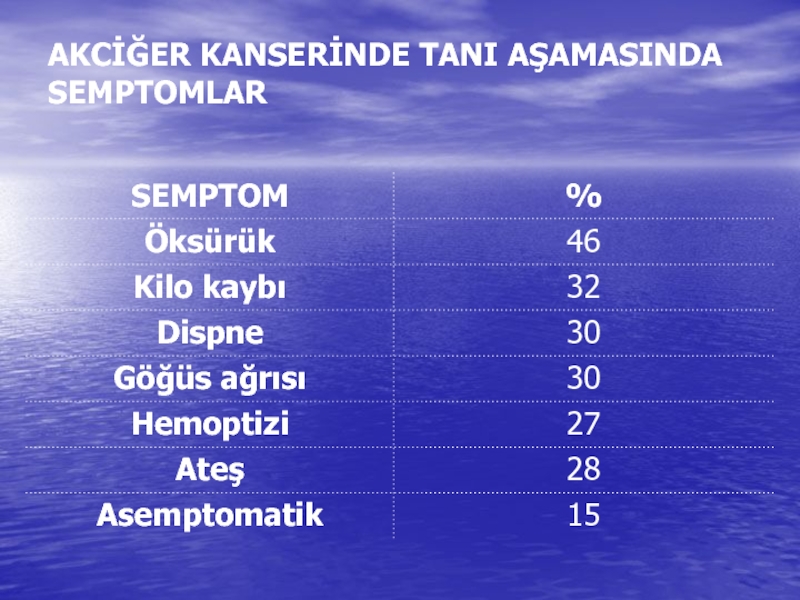 Слайд 12AKCİĞER KANSERİNDE TANI AŞAMASINDA SEMPTOMLAR