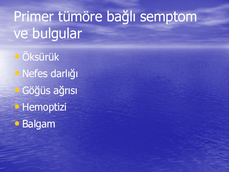 Слайд 14Primer tümöre bağlı semptom ve bulgular