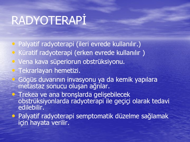 Palyatif radyoterapi (ileri evrede kullanılır.)