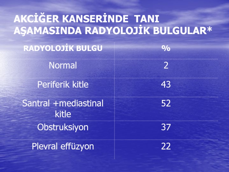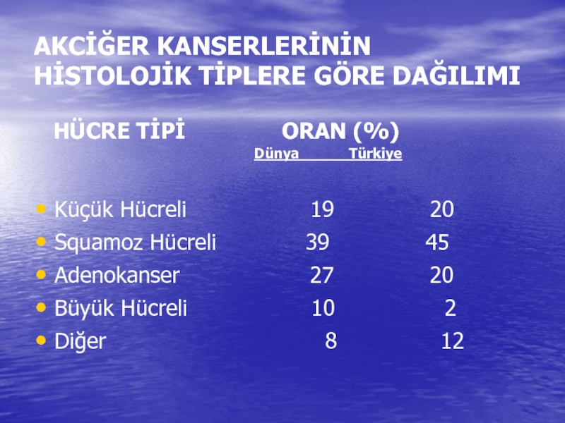 Слайд 8AKCİĞER KANSERLERİNİN HİSTOLOJİK TİPLERE GÖRE DAĞILIMI