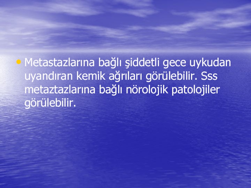 Слайд 11Metastazlarına bağlı şiddetli gece uykudan uyandıran kemik ağrıları görülebilir. Sss