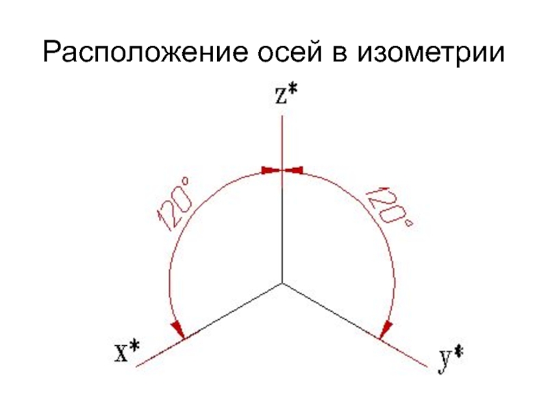 2. Строят аксонометрические оси с таким расчетом, чтобы