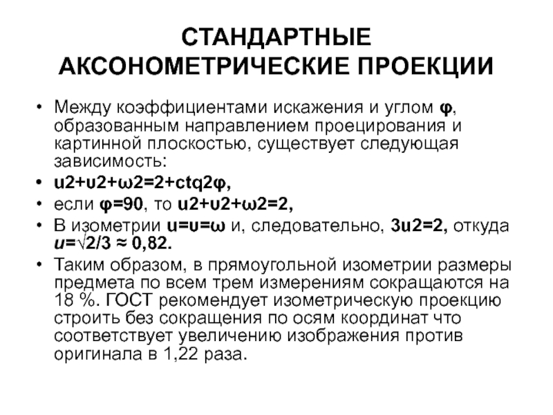 Слайд 9СТАНДАРТНЫЕ АКСОНОМЕТРИЧЕСКИЕ ПРОЕКЦИИ