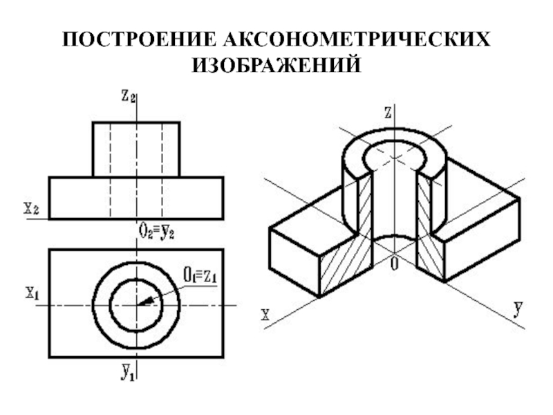 Слайд 21ПОСТРОЕНИЕ АКСОНОМЕТРИЧЕСКИХ ИЗОБРАЖЕНИЙ