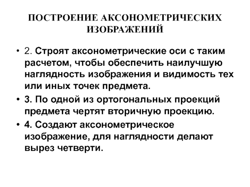 Слайд 22ПОСТРОЕНИЕ АКСОНОМЕТРИЧЕСКИХ ИЗОБРАЖЕНИЙ