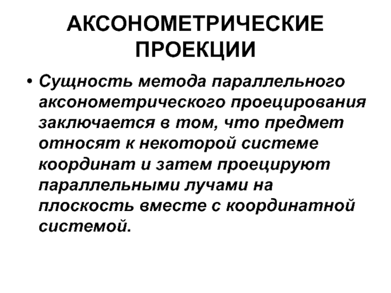 Сущность метода параллельного аксонометрического проецирования заключается в том, что