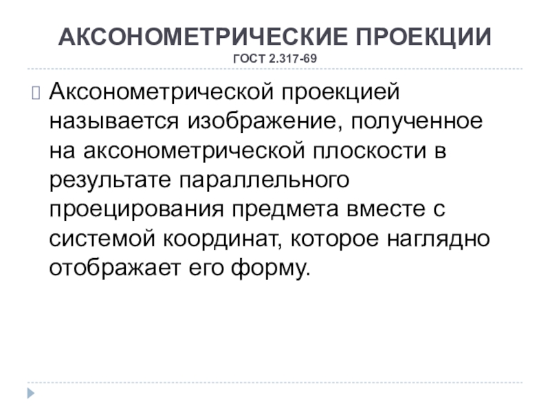 Слайд 3АКСОНОМЕТРИЧЕСКИЕ ПРОЕКЦИИ ГОСТ 2.317-69