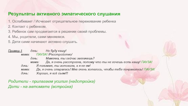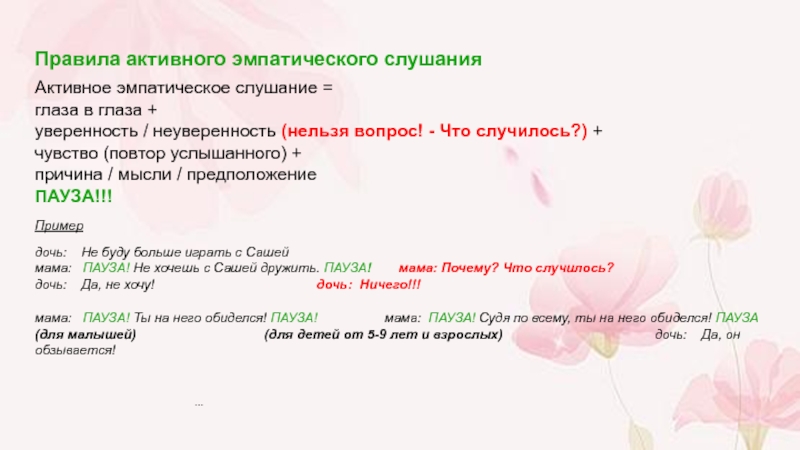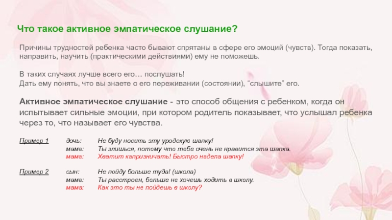 Активное эмпатическое слушание - это способ общения с ребенком, когда он испытывает сильные эмоции, при котором родитель показывает, что услышал ребенка через то, что называет его чувства.