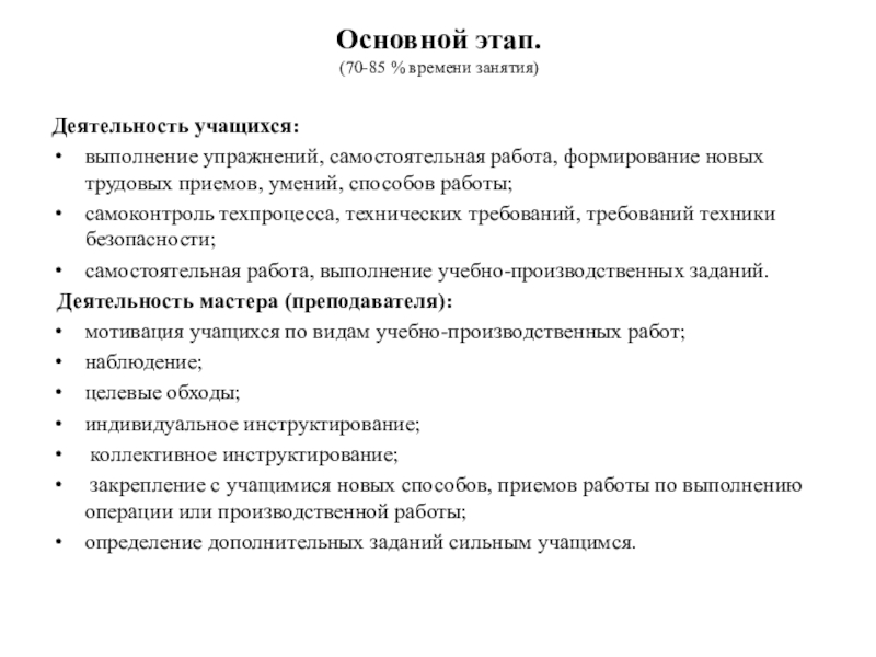 которая включает деятельность мастера – инструктирование и деятельность учащихся –учение. Инструктирование и