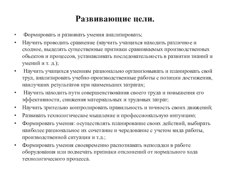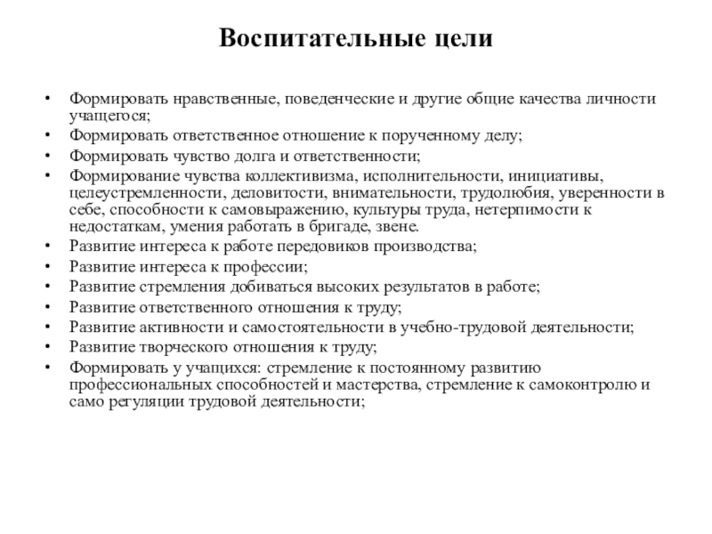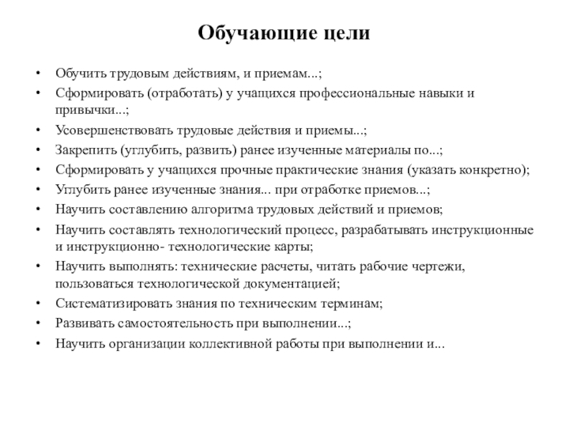 определение целей и задач каждого урока производственного обучения. учебного занятия