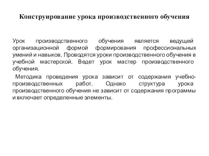 Слайд 1 Актуальные методики и правила конструирования уроков производственного обучения.