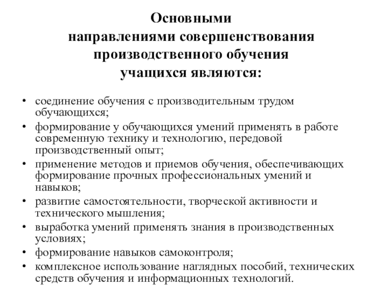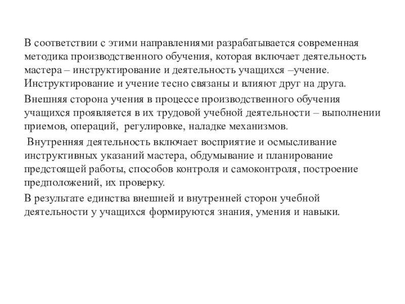 Слайд 4В соответствии с этими направлениями разрабатывается современная методика производственного обучения,