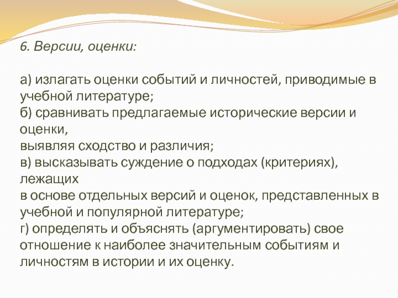 г) определять и объяснять (аргументировать) свое отношение к наиболее значительным событиям и личностям в истории и их оценку.