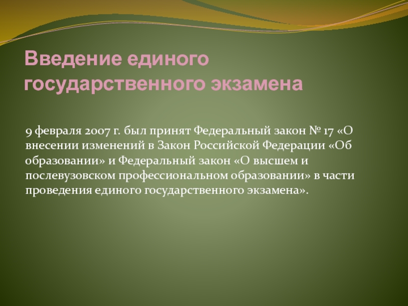 Слайд 2Введение единого государственного экзамена