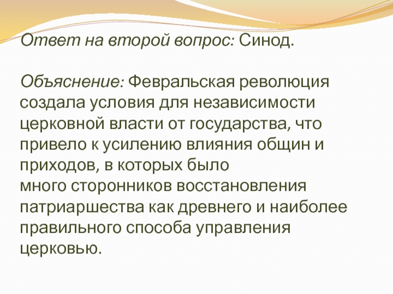Слайд 21Ответ на второй вопрос: Синод.