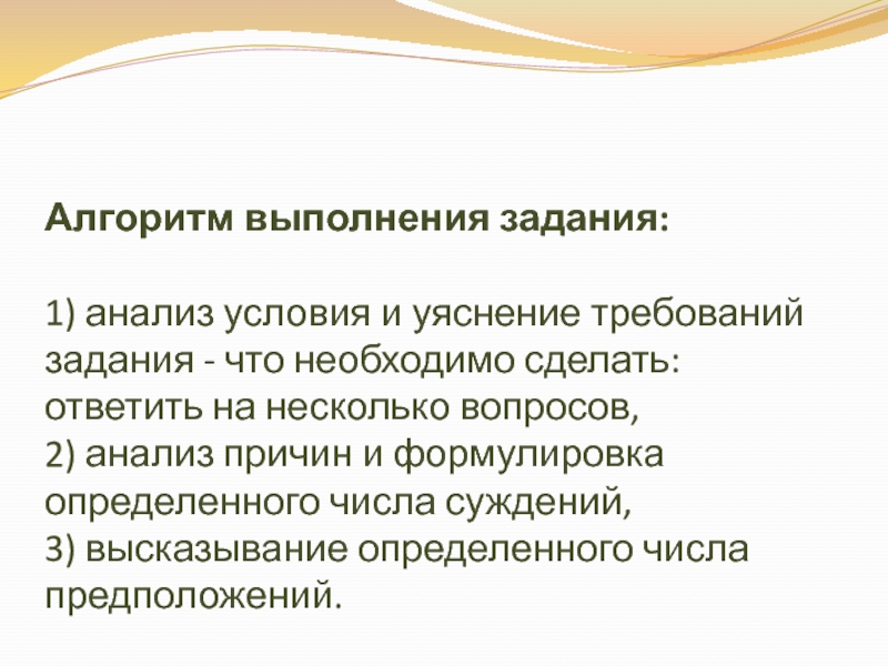 Слайд 30Формулировка этого задания включает своеобразный план, который является основой для