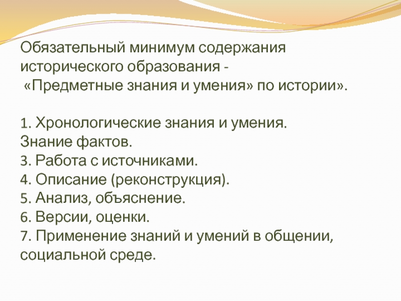 Слайд 5Обязательный минимум содержания исторического образования -