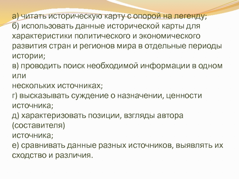 д) сравнивать исторические события;