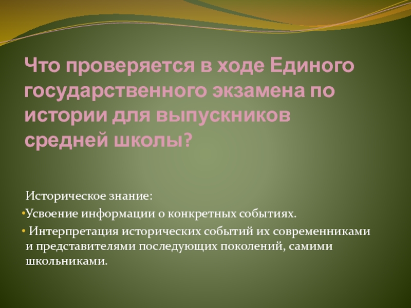Слайд 4Что проверяется в ходе Единого государственного экзамена по истории для