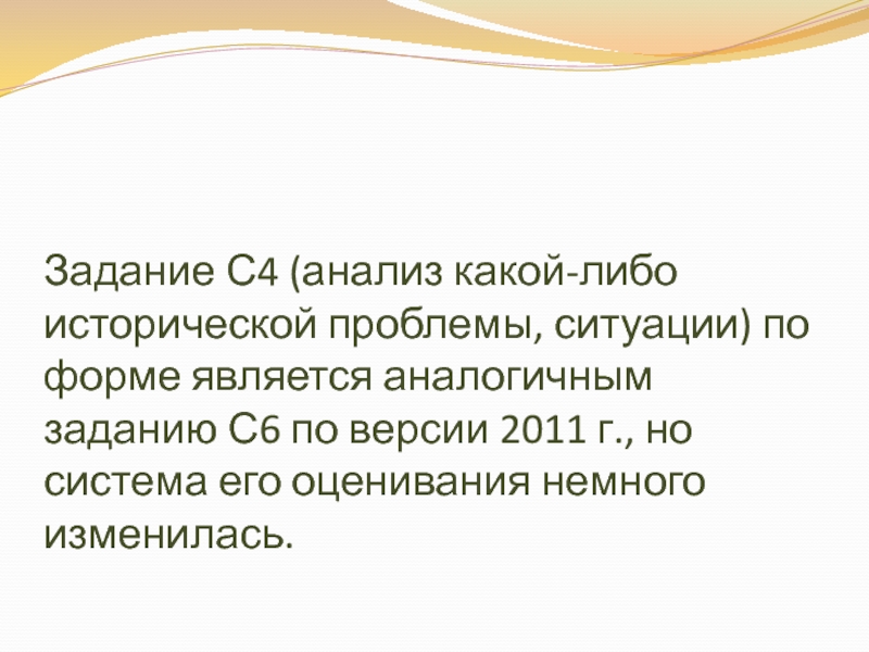 Слайд 18Задание С4 (анализ какой-либо исторической проблемы, ситуации) по форме является