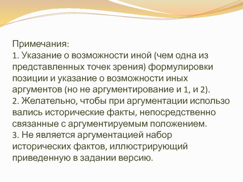 2. Желательно, чтобы при аргументации использовались исторические факты, непосредственно связанные с аргументируемым положением.