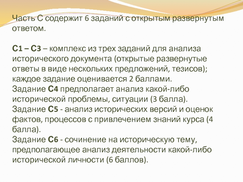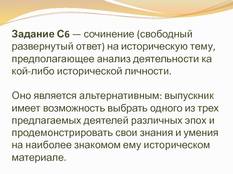 Слайд 29Задание С6 — сочинение (свободный развернутый ответ) на историческую тему,