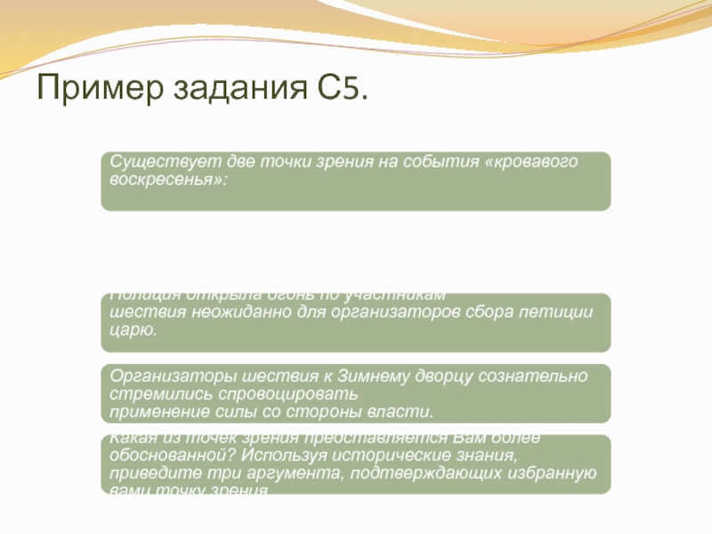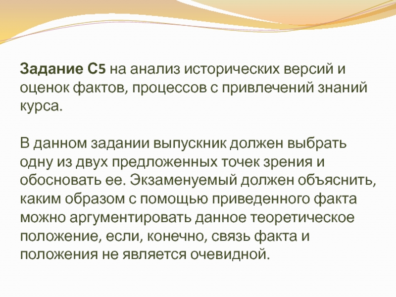 Слайд 23Задание С5 на анализ исторических версий и оценок фактов, процессов