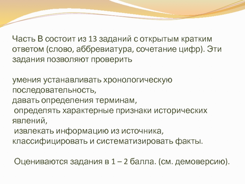 документа (открытые развернутые ответы в виде нескольких предложений, тезисов); каждое задание оценивается 2 баллами.