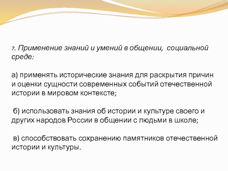 7. Применение знаний и умений в общении, социальной среде.