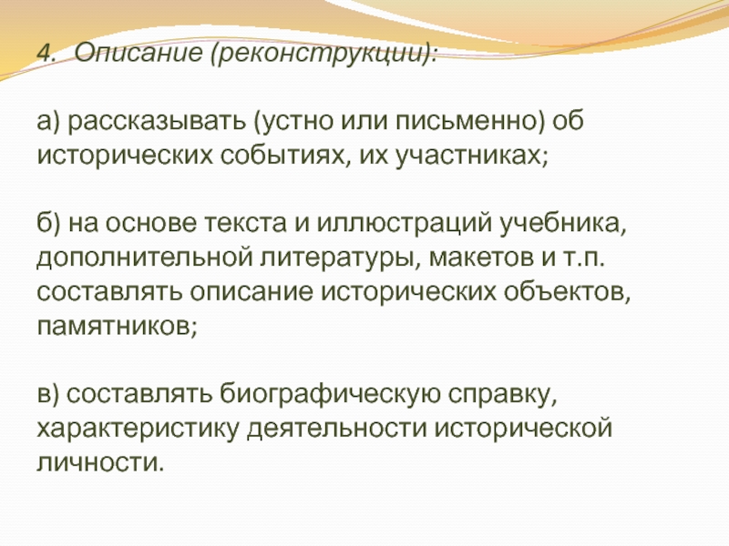 и т.п. составлять описание исторических объектов, памятников;