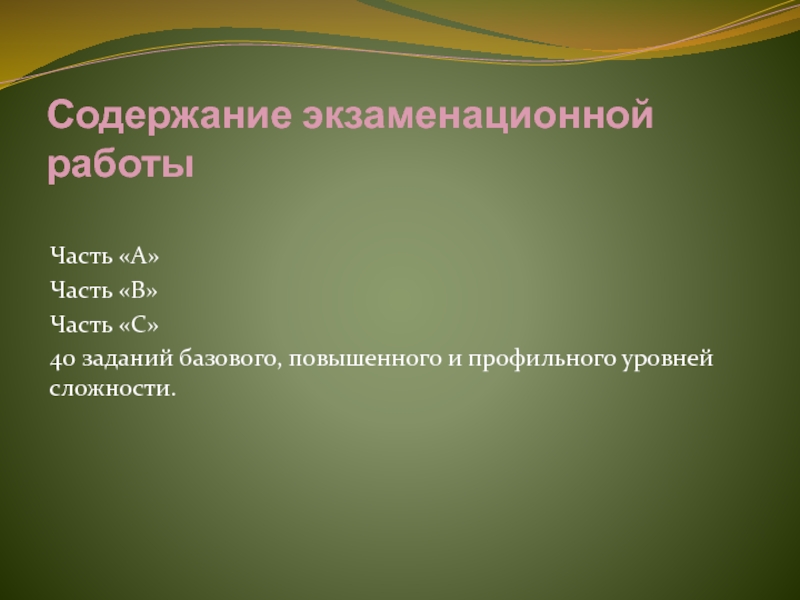 Слайд 13Содержание экзаменационной работы