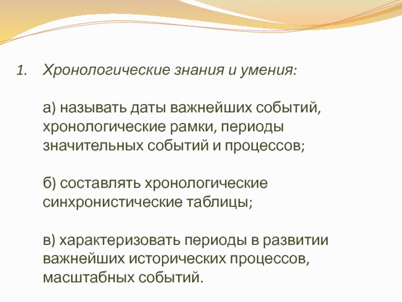 Слайд 6Хронологические знания и умения: