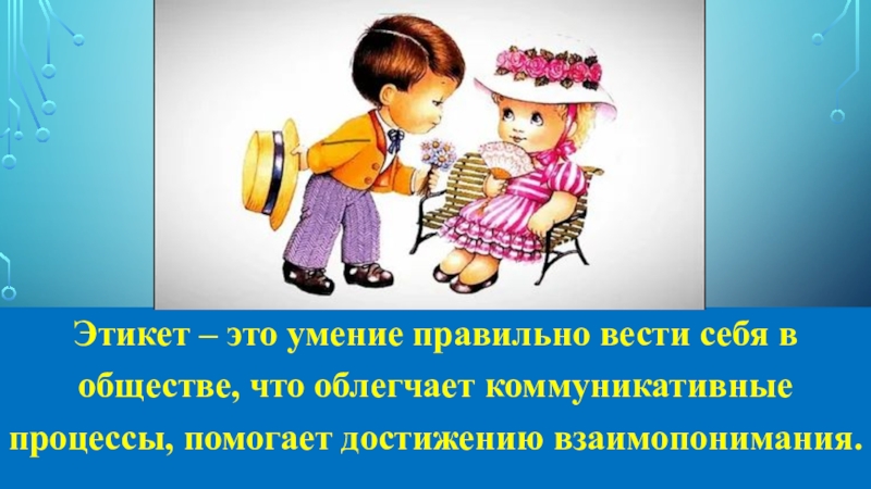 Слайд 7Этикет – это умение правильно вести себя в обществе, что
