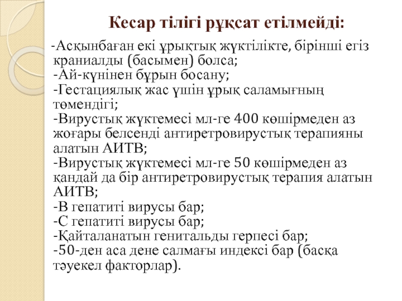 Слайд 22Кесар тілігі рұқсат етілмейді: