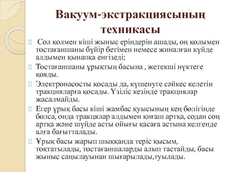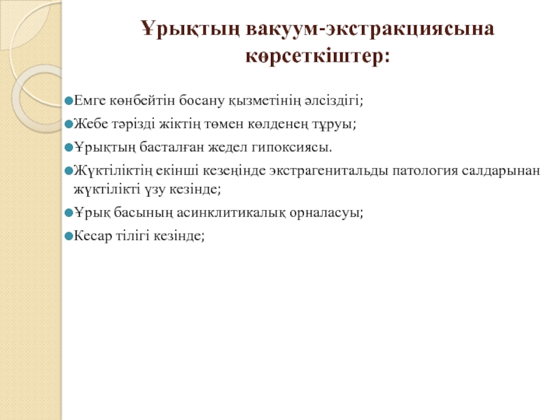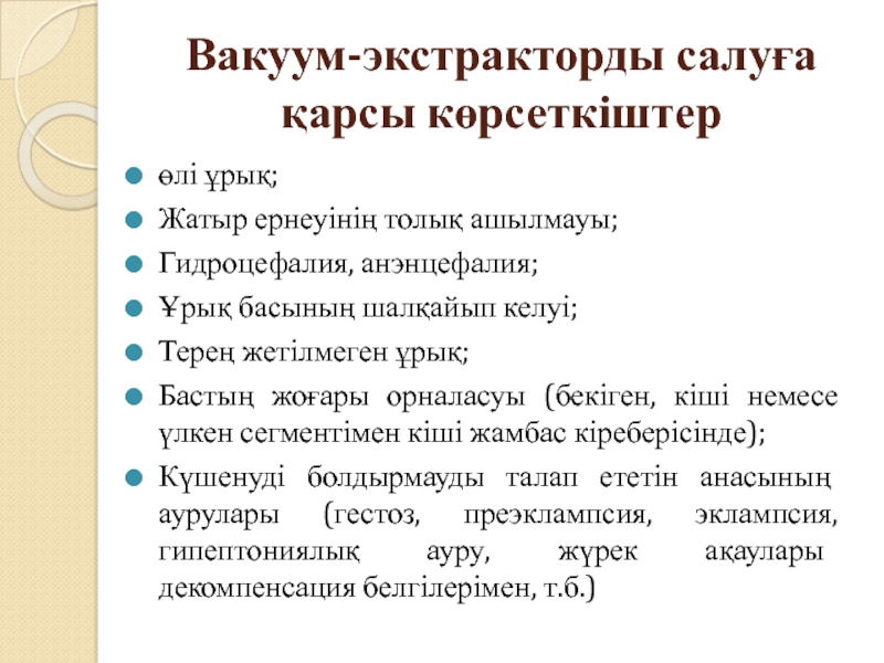 Слайд 16Вакуум-экстракторды салуға қарсы көрсеткіштер