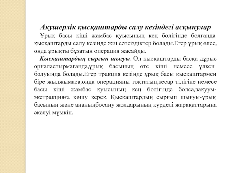 Слайд 11Акушерлік қысқаштарды салу кезіндегі асқынулар